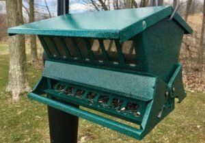A bird feeder filled with blackbirds and grackles is not a beautiful sight. The good news is that you can use a dome to keep the aggressive birds out of your yard. The feeder is attached to the top and has a dome that acts as a cover for it, much like an umbrella.